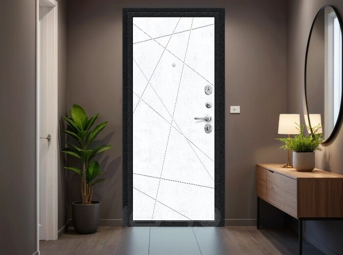 Дверь входная Граффити-5 (115/Г5) Букле черное/Snow Art, 2 замка, с ночной задвижкой