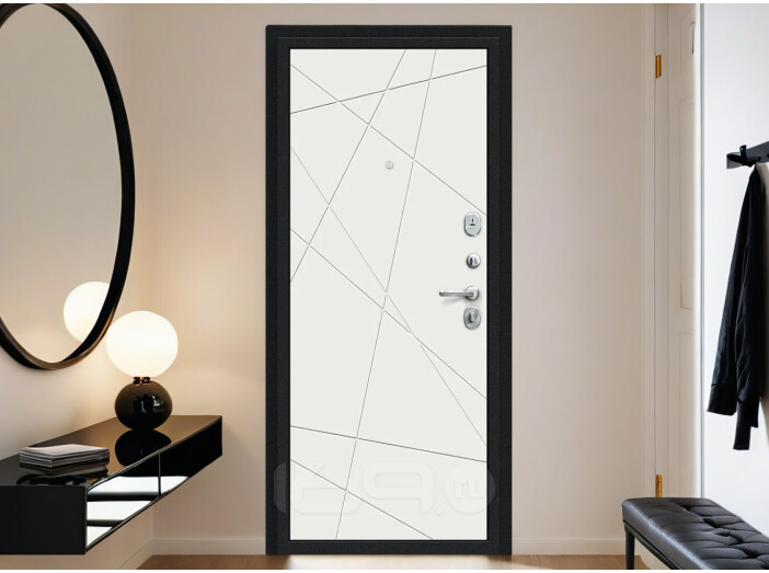 Дверь входная Граффити-5 Букле черное/Super White, 2 замка, с ночной задвижкой