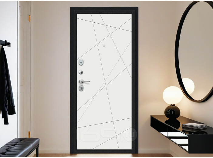 Дверь входная Граффити-5 Букле черное/Super White, 2 замка, с ночной задвижкой
