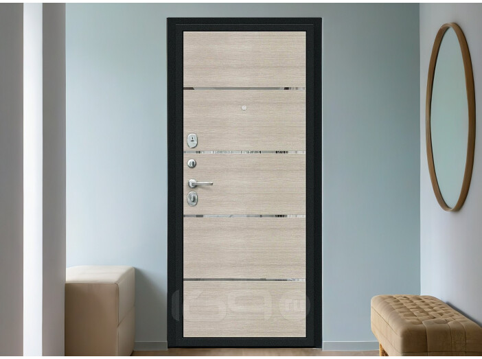 Дверь входная Лайн Букле черное/Cappuccino Veralinga, 2 замка, с ночной задвижкой