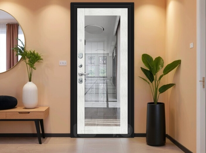 Дверь входная Флэт Kale Almon 28/Bianco Veralinga, с зеркалом, 2 замка, с ночной задвижкой