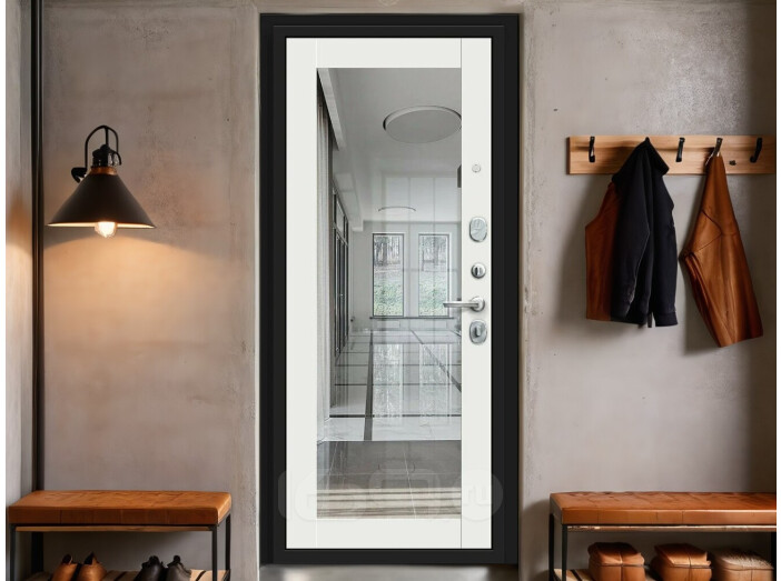 Дверь входная Флэт Kale Almon 28/Off-white, с зеркалом, 2 замка, с ночной задвижкой 205x96 Правое