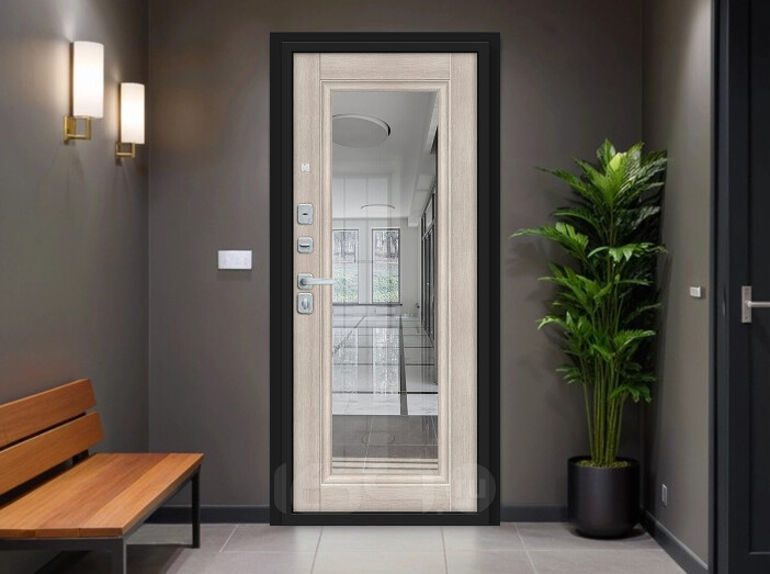 Дверь входная Форм/BChrome Almon/Cappuccino Melinga, с зеркалом, 2 замка, с ночной задвижкой