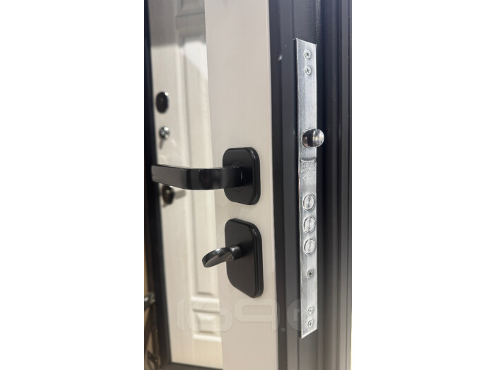 Дверь входная Лайнер/SBlack Carbon/White Silk, с зеркалом, 2 замка, с ночной задвижкой 205x86 Правое