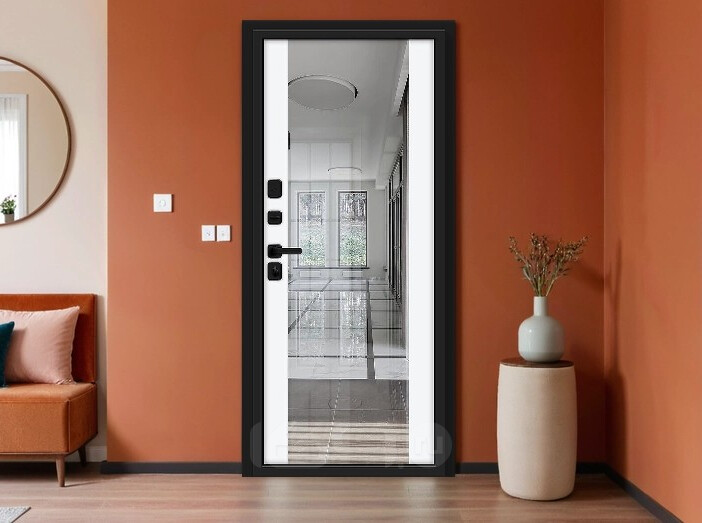 Дверь входная Лайнер/SBlack Black Shell/White Silk, с зеркалом, 2 замка, с ночной задвижкой