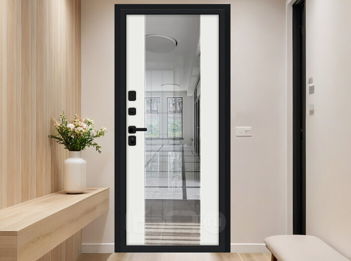 Дверь входная Эйр Букле черное/White Shell, с зеркалом, 2 замка, с ночной задвижкой