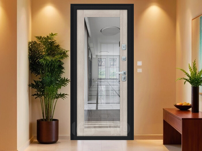 Дверь входная Thermo-2 Флэш Декор-2 с терморазрывом Букле черное/Cappuccino Veralinga, с зеркалом, 2 замка, с ночной задвижкой