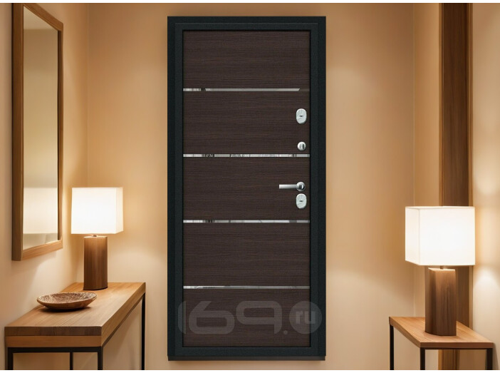 Дверь входная Thermo Лайн с терморазрывом Букле черное/Wenge Veralinga, 2 замка, с ночной задвижкой