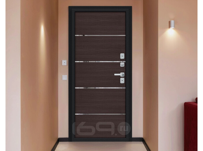 Дверь входная Thermo Лайн/BChrome с терморазрывом Букле черное/Wenge Melinga, 2 замка, с ночной задвижкой