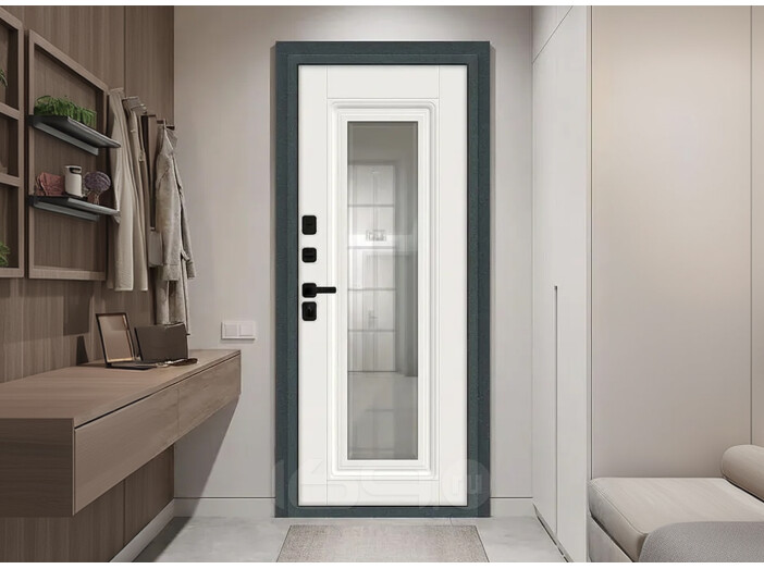 Дверь входная Шелл СД/SBlack с терморазрывом Старк антрацит/White Sand, с зеркалом, 2 замка, с ночной задвижкой