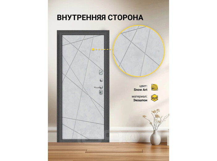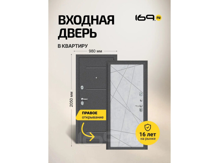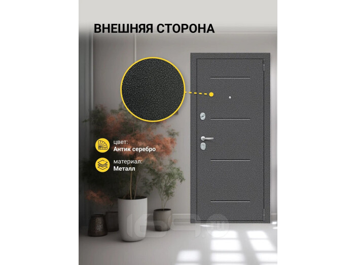 Цельногнутая конструкция полотна и закрытый цельнокатаный профиль коробки. Стабильно точные геометрические показатели, которые обеспечиваются высокой степенью автоматизации и роботизации производства. Подходит для установки в квартире (внутри подъезда).