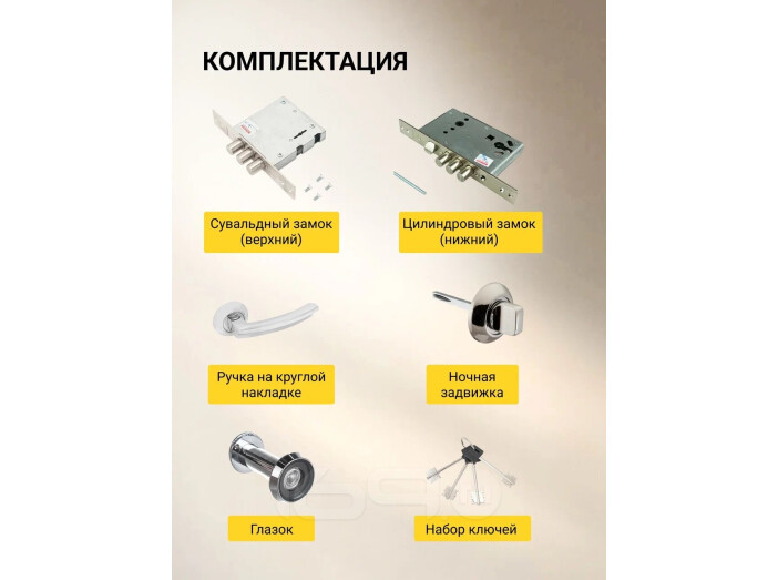 Верхний замок:Сувальдный замок Border G 8-6 Э с 3 ригелями диаметром 16 мм, 4 ключа 97 мм, 4-й (высший) класс