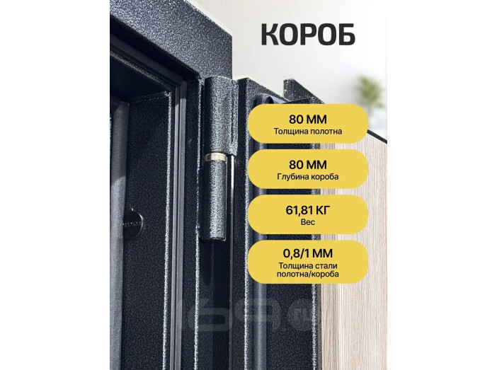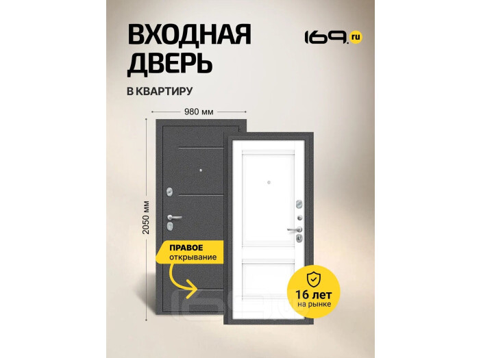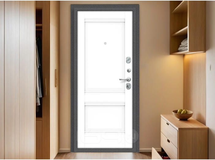 Цельногнутая конструкция полотна и закрытый цельнокатаный профиль коробки. Стабильно точные геометрические показатели, которые обеспечиваются высокой степенью автоматизации и роботизации производства. Подходит для установки в квартире (внутри подъезда).