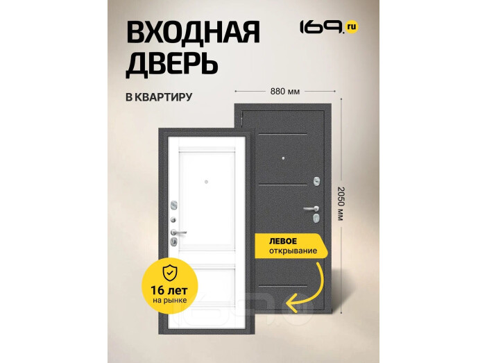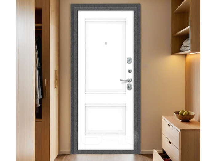 Цельногнутая конструкция полотна и закрытый цельнокатаный профиль коробки. Стабильно точные геометрические показатели, которые обеспечиваются высокой степенью автоматизации и роботизации производства. Подходит для установки в квартире (внутри подъезда).