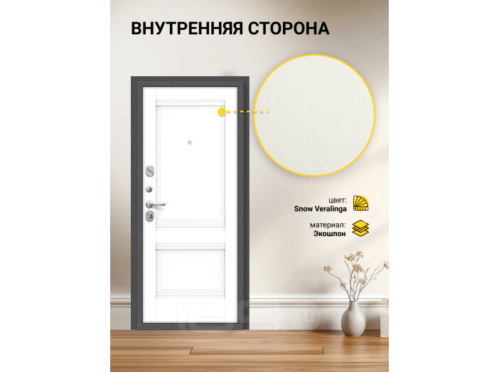 Дверь входная Porta R-2 104/K42 Антик серебро/Snow Veralinga, 2 замка, с ночной задвижкой