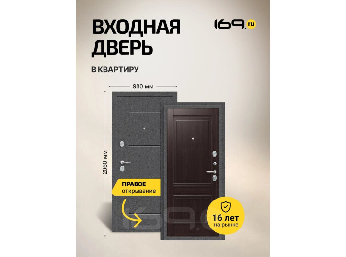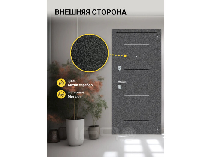 Цельногнутая конструкция полотна и закрытый цельнокатаный профиль коробки. Стабильно точные геометрические показатели, которые обеспечиваются высокой степенью автоматизации и роботизации производства. Подходит для установки в квартире (внутри подъезда).