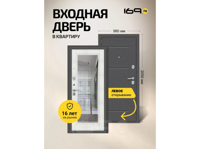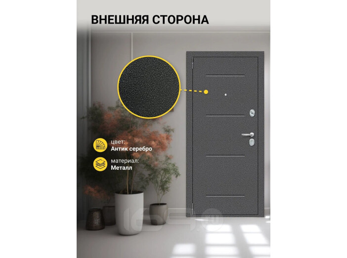 Цельногнутая конструкция полотна и закрытый цельнокатаный профиль коробки. Стабильно точные геометрические показатели, которые обеспечиваются высокой степенью автоматизации и роботизации производства. Подходит для установки в квартире (внутри подъезда).