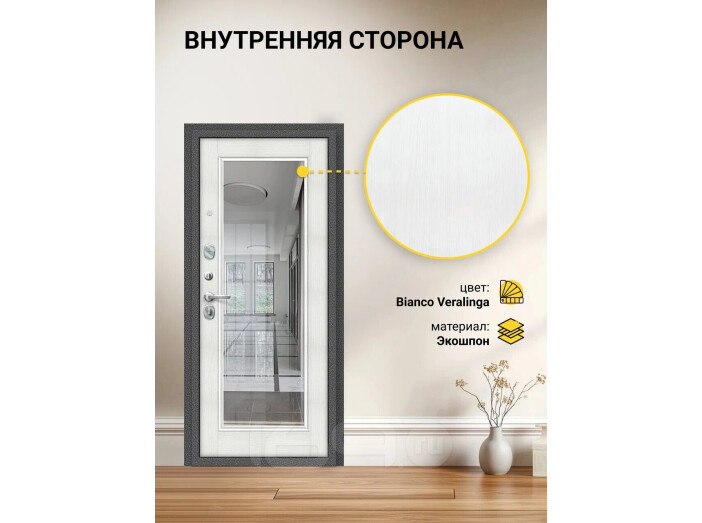 Отделка внутри:Декоративная панель с возможностью замены. Толщина 22 мм, Эко Шпон, зеркало Reflex.