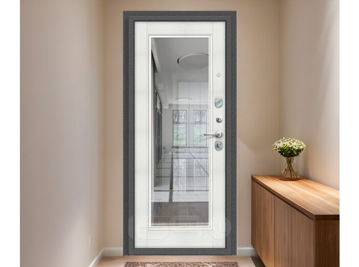 Дверь входная Porta R-2 104/П61 Антик серебро/Bianco Veralinga, с зеркалом, 2 замка, с ночной задвижкой
