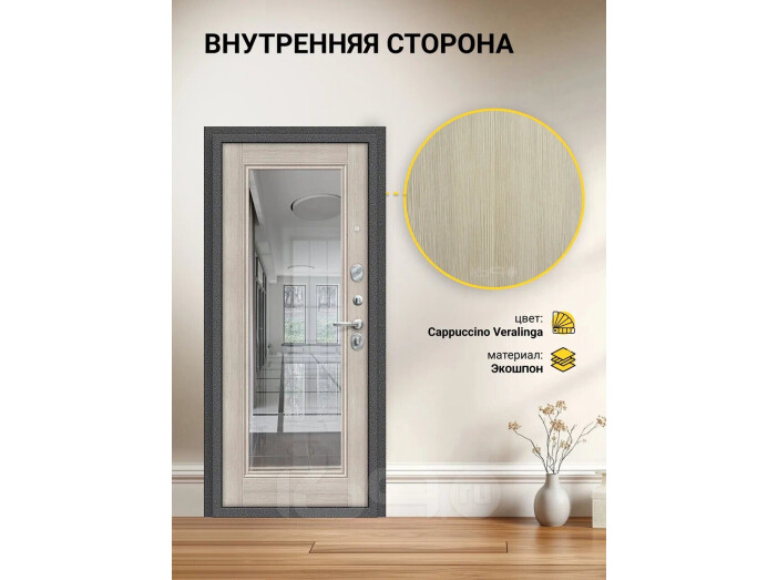 Дверь входная Porta R-2 104/П61 Антик серебро/Cappuccino Veralinga, с зеркалом, 2 замка, с ночной задвижкой