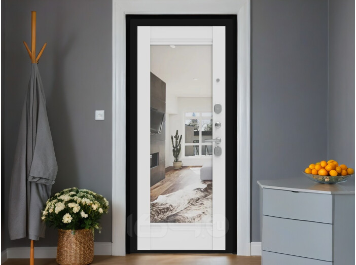 Дверь входная Porta R-3 4/K41 Graphite Pro/Alaska, с зеркалом, 2 замка, с ночной задвижкой