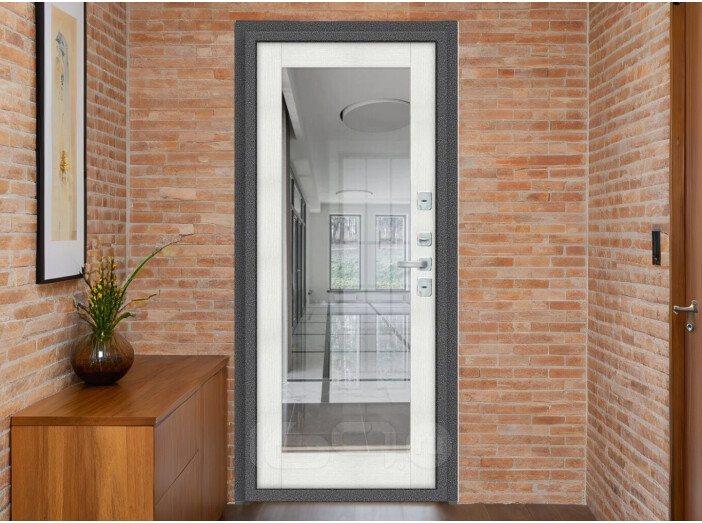Дверь входная Porta T2 104/П15 с терморазрывом Антик Серебро/Bianco Veralinga, с зеркалом, 2 замка, с ночной задвижкой