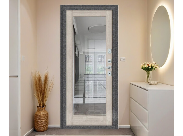 Дверь входная Porta T2 104/П15 с терморазрывом Антик Серебро/Cappuccino Veralinga, с зеркалом, 2 замка, с ночной задвижкой