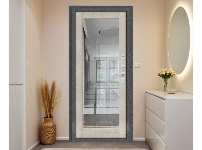 Дверь входная Porta T2 104/П15 с терморазрывом Антик Серебро/Cappuccino Veralinga, с зеркалом, 2 замка, с ночной задвижкой