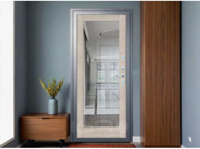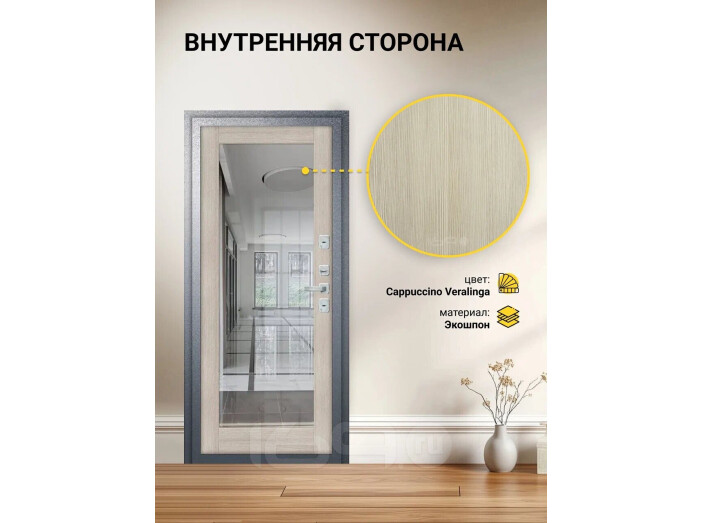 Дверь входная Porta T4 403/П15 с терморазрывом Букле Графит/Cappuccino Veralinga, с зеркалом, 2 замка, с ночной задвижкой