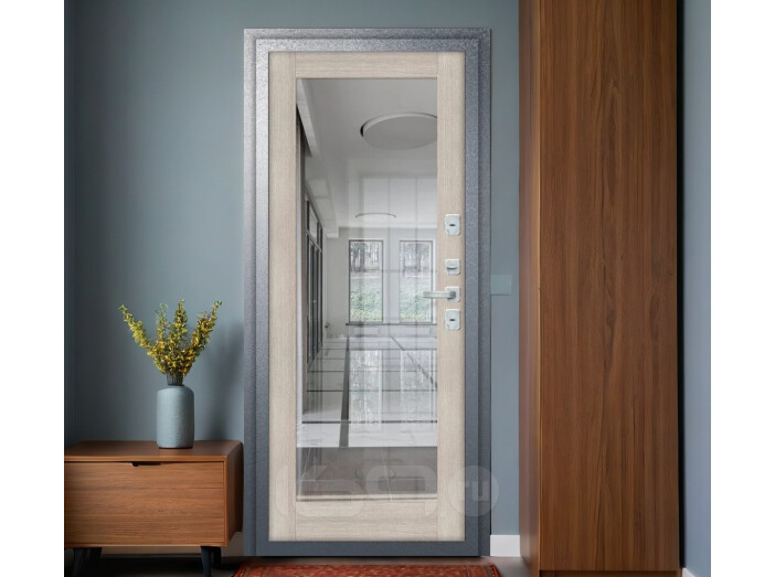 Дверь входная Porta T4 403/П15 с терморазрывом Букле Графит/Cappuccino Veralinga, с зеркалом, 2 замка, с ночной задвижкой