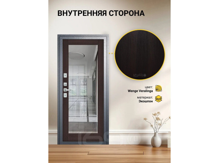 Дверь входная Porta T4 403/П15 с терморазрывом Букле Графит/Wenge Veralinga, с зеркалом, 2 замка, с ночной задвижкой