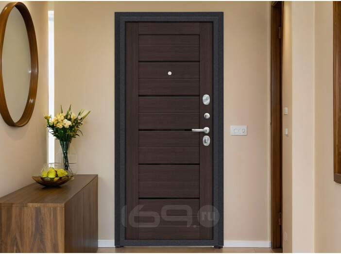 Цельногнутая конструкция полотна и закрытый цельнокатаный профиль коробки. Стабильно точные геометрические показатели, которые обеспечиваются высокой степенью автоматизации и роботизации производства. Подходит для установки в квартире (внутри подъезда).
