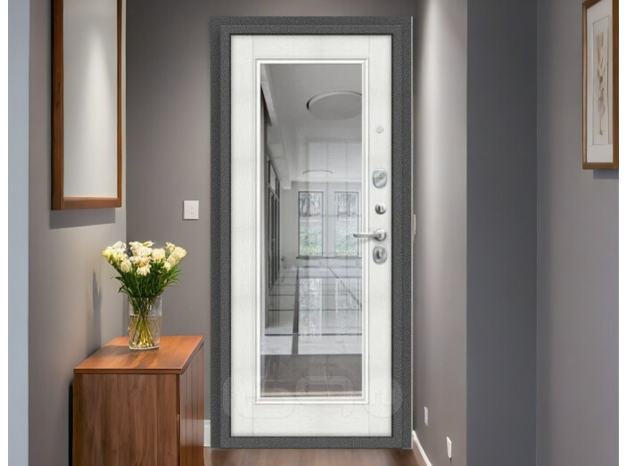 Дверь входная Porta S-2P 104/П61 Антик Серебро/Bianco Veralinga, с зеркалом, 2 замка, с ночной задвижкой