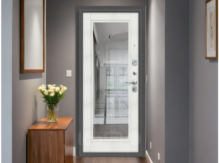Дверь входная Porta S-2P 104/П61 Антик Серебро/Bianco Veralinga, с зеркалом, 2 замка, с ночной задвижкой