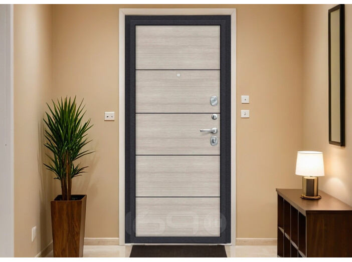 Цельногнутая конструкция полотна и закрытый цельнокатаный профиль коробки. Стабильно точные геометрические показатели, которые обеспечиваются высокой степенью автоматизации и роботизации производства. Подходит для установки в квартире (внутри подъезда).