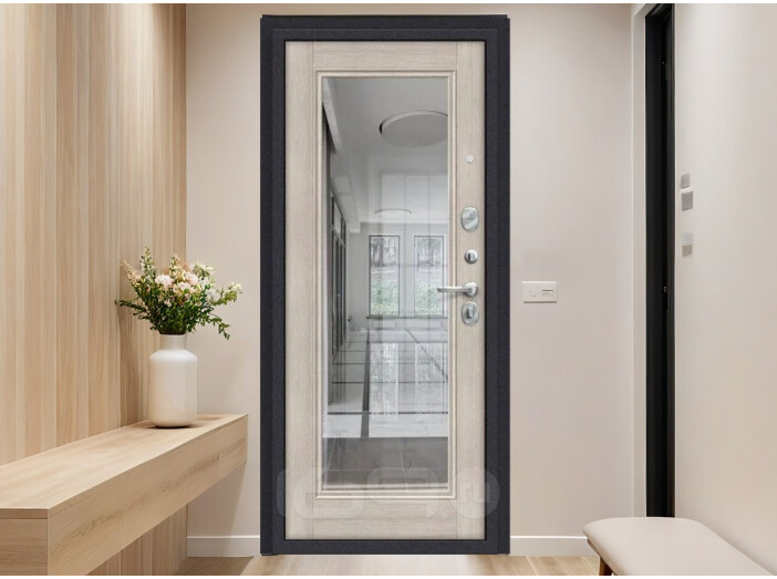 Дверь входная Porta S-3P 51/П61 Almon 28/Cappuccino Veralinga/Reflex, с зеркалом, 2 замка, с ночной задвижкой