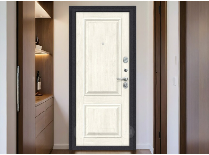 Цельногнутая конструкция полотна и закрытый цельнокатаный профиль коробки. Стабильно точные геометрические показатели, которые обеспечиваются высокой степенью автоматизации и роботизации производства. Подходит для установки в квартире (внутри подъезда).
