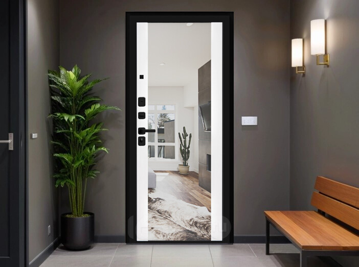 Дверь входная Porta F-3 99/П05 Moon Stone/Shellac White, с зеркалом, 2 замка, с ночной задвижкой