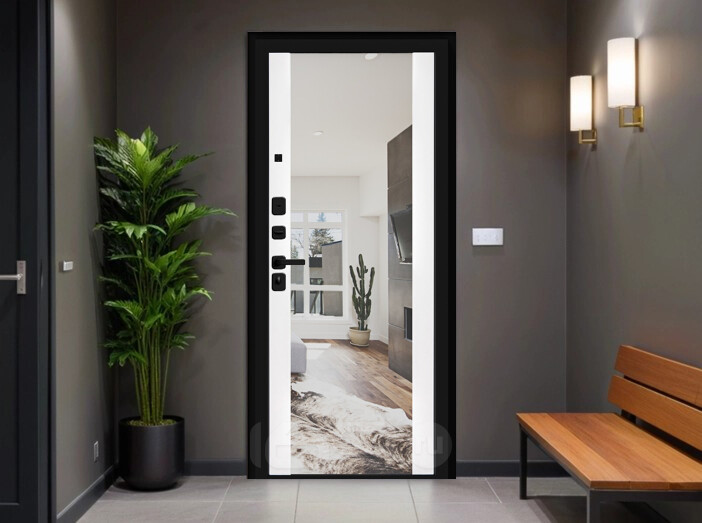 Дверь входная Porta L-3 99/П05 Moon Stone/Shellac White, с зеркалом, 2 замка, с ночной задвижкой