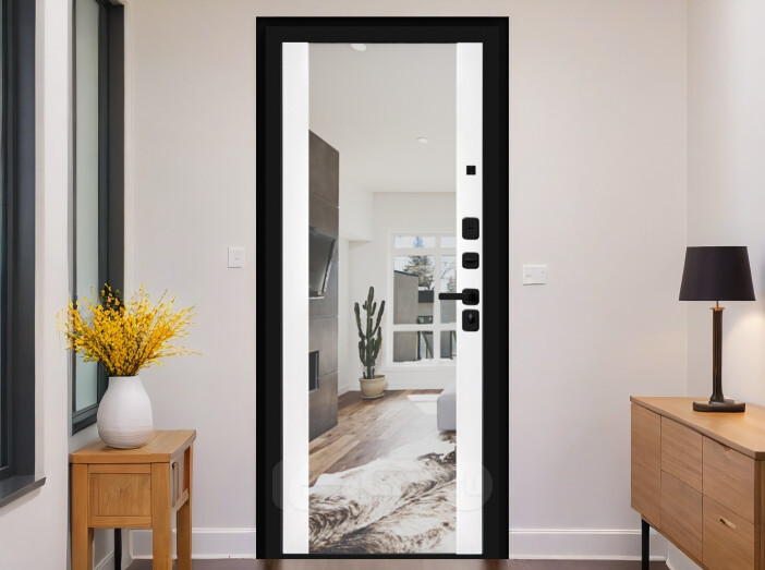 Дверь входная Porta R-3 99/П05 Moon Stone/Shellac White, с зеркалом, 2 замка, с ночной задвижкой