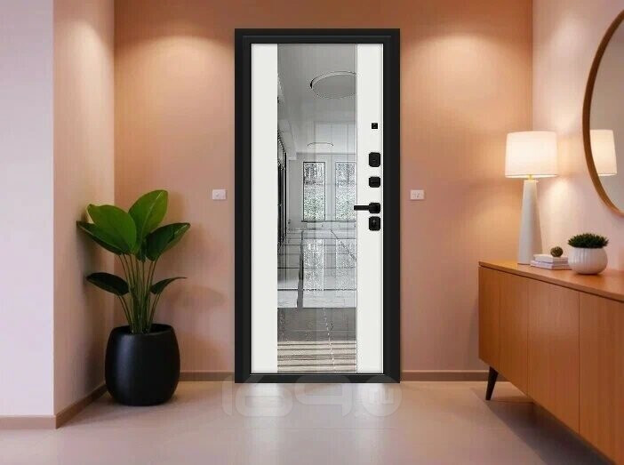 Дверь входная Optim Z-2 Муар черный/Белый, с зеркалом, 2 замка, с ночной задвижкой