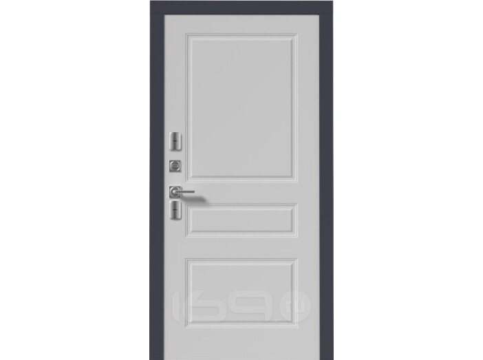 Современная входная металлическая дверь с внешней отделкой в сером цвете "винорит" — износостойком и влагостойком покрытии. Подходит для установки в квартире (внутри подъезда).