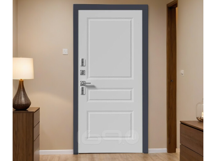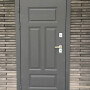 Современная входная металлическая дверь с внешней отделкой в сером цвете "винорит" — износостойком и влагостойком покрытии. Подходит для установки в квартире (внутри подъезда).