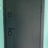 Элегантная входная дверь с внешней отделкой "Чёрный кварц" — прочное декоративное покрытие с эффектной текстурой. Подходит для установки в квартире (внутри подъезда).