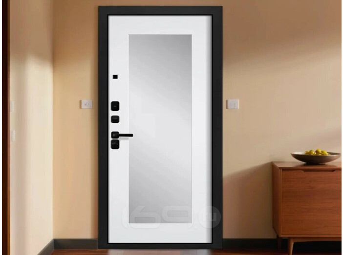 Дверь входная Good 2 Графит шагрень/Velluto Bianco, с зеркалом, 2 замка, с ночной задвижкой