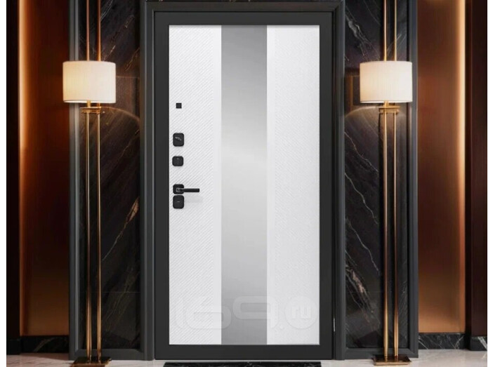 Дверь входная Lukse-506 Vellutto Verde/Белый матовый, с зеркалом, 2 замка, с ночной задвижкой