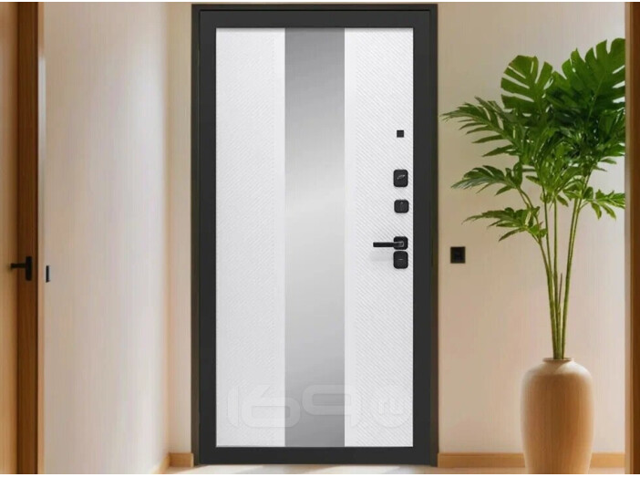 Дверь входная Lukse-506 Vellutto Verde/Белый матовый, с зеркалом, 2 замка, с ночной задвижкой