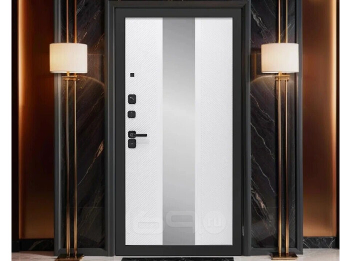 Дверь входная Lukse-506 Vellutto Verde/Белый матовый, с зеркалом, 2 замка, с ночной задвижкой